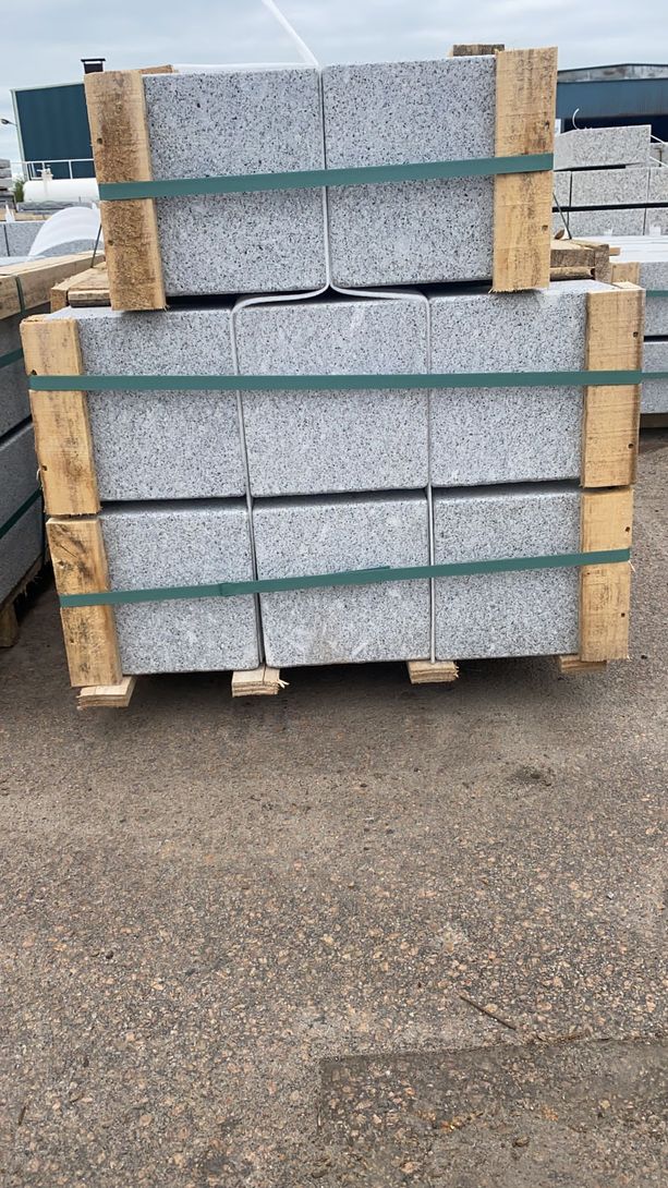 Stolpar i portugisisk granit med alla sidor blästrade.