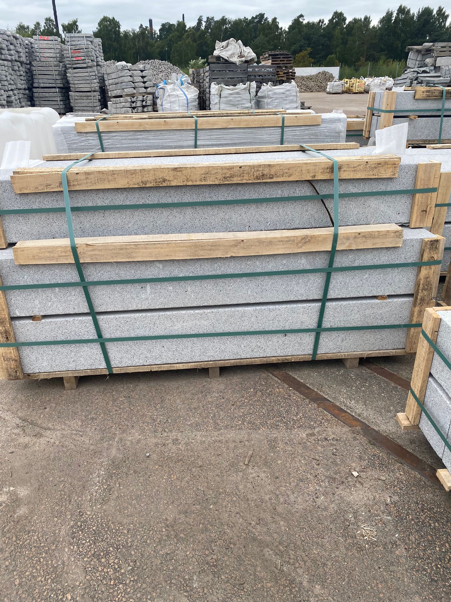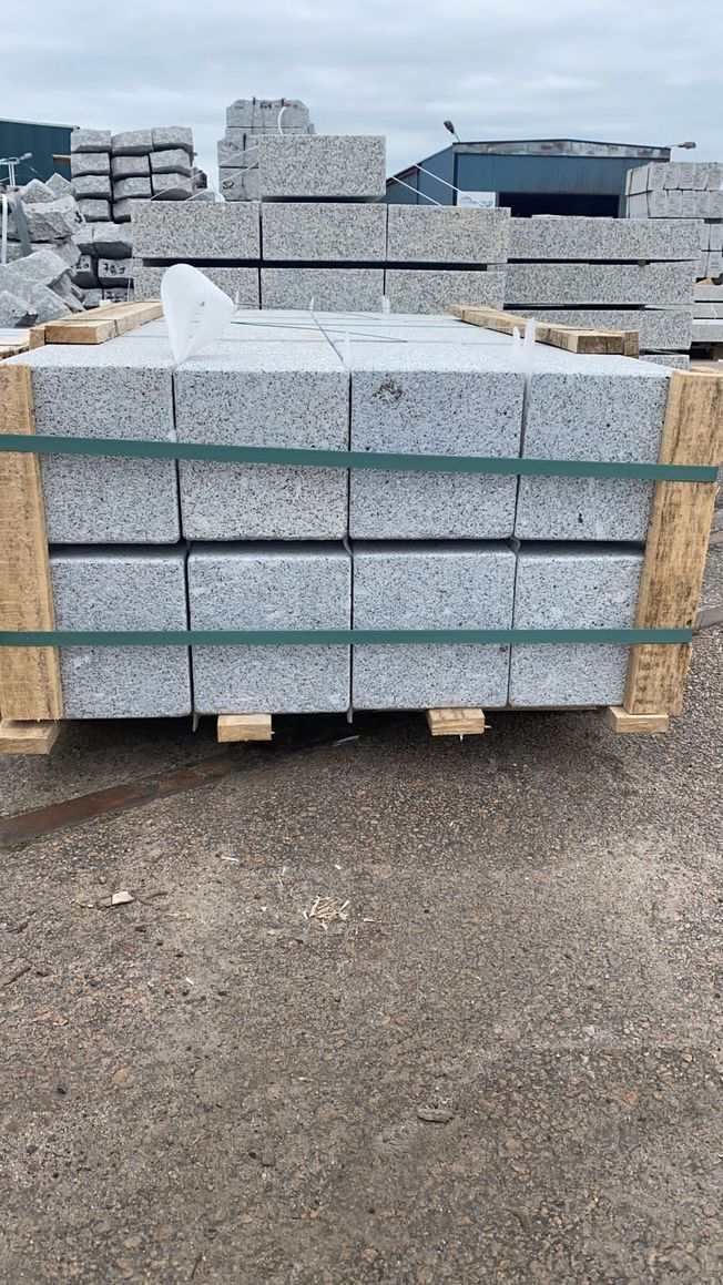 Stolpar i portugisisk granit med alla sidor blästrade.